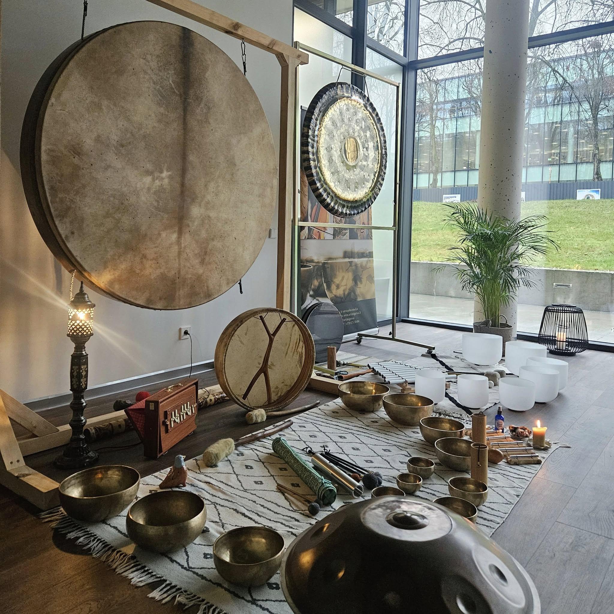 - Gongai, šamaniški būgnai, terapiniai būgnai, tibetietiški dubenėliai, krištoliniai dainuojantys dubenys, obertoninė fleita: įvairūs intuityvaus grojimo instrumentai