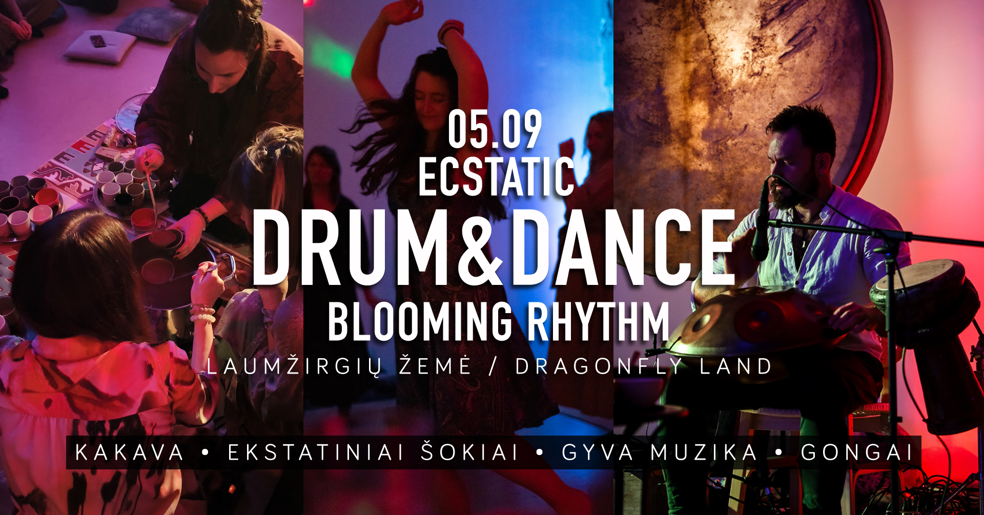 Ekstatiniai šokiai ir būgnai – SKAMBANTIS kūnas. PAVASARIS. Žydintys ritmai. Išsiskleidimas. EN below (scroll down) Pavasario žydėjime, kai žemė kvėpuoja gaivališku ritmu, kviečiame Tave į ekstatinį patyrimą. Į pulsuojančią gyvastimi…